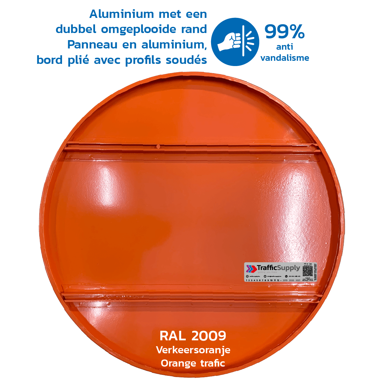 Officieel aluminium verkeersbord met een dubbel omgeplooide rand.