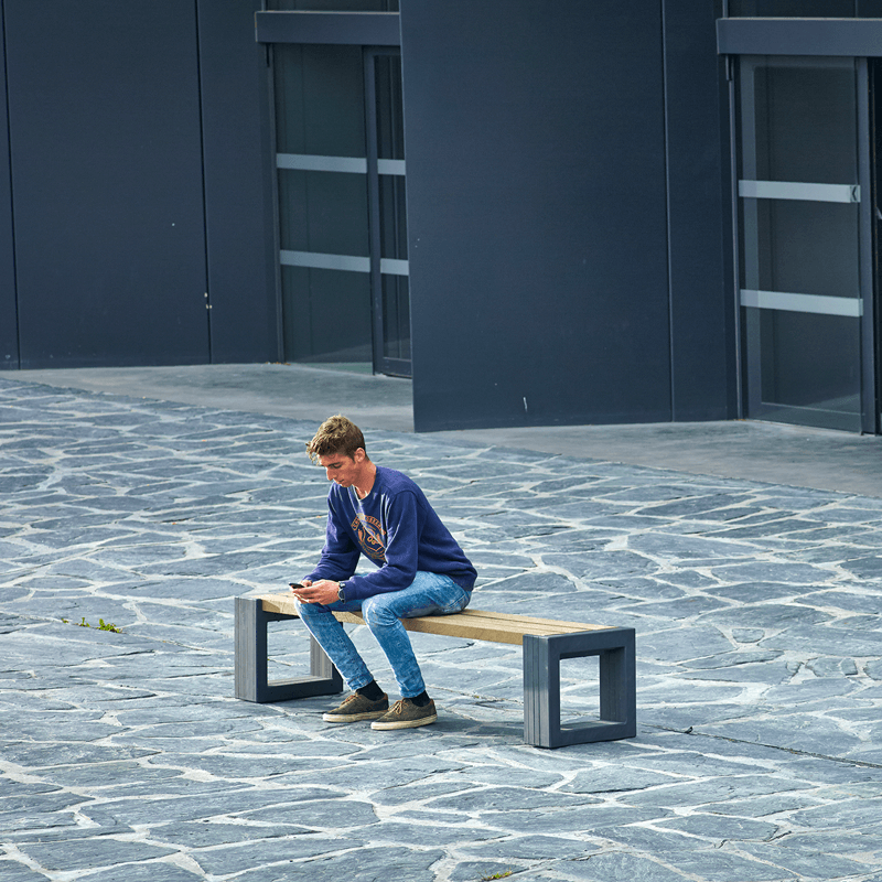 Stijlvol, minimalistisch design en strakke lijnen, kenmerken die van onze Matrix kunststof buitenbank een topper maken. Bijkomend is hij vervaardigd uit massief 100% gerecycleerd kunststof en is in de kern gekleurd.
