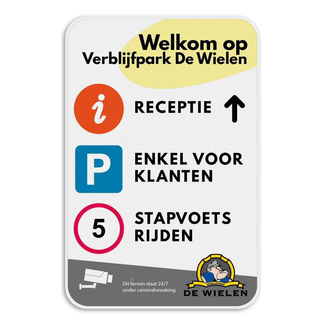 LET OP! Het getoonde bord is een voorbeeld, en kan NIET zo besteld worden. Hierop rust auteursrecht. Je kan je eigen ontwerp aanleveren of je bezorgt ons een briefing en je logo en wij maken een ontwerp voor jouw.