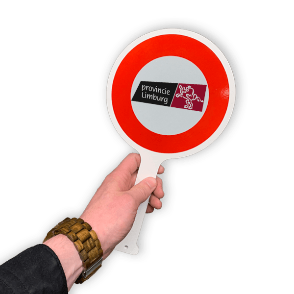 Het reflecterende handbordje C3 - met eigen opdruk is de ideale keuze voor verkeersbegeleiding en seingevers die duidelijk en zichtbaar willen communiceren. Personaliseer het bordje met jouw eigen opdruk, zoals een bedrijfsnaam of logo, om professionaliteit en herkenbaarheid te vergroten.