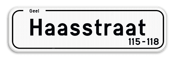 Straatnaambord België 7:2 + Stad/Gemeente - ondertekst