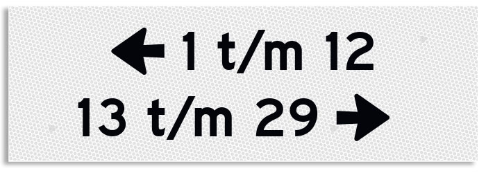 Op verzamelborden kan worden volstaan met het vermelden van het laagste en het hoogste huisnummer, bijvoorbeeld: